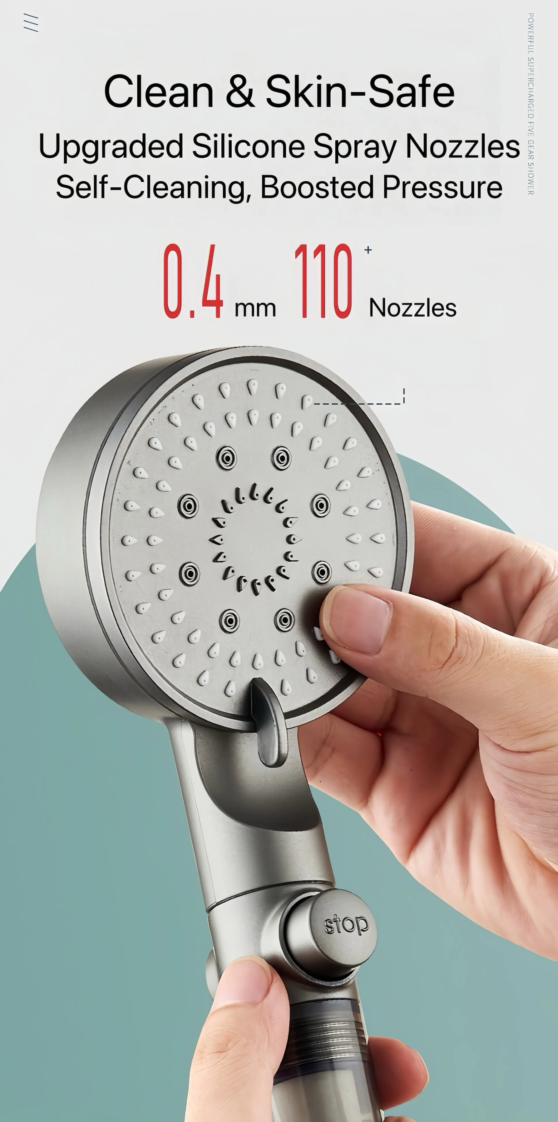 The one-touch stop button allows you to pause water instantly—perfect for soaping, shampooing, or saving water. Made from thick ABS material, it’s built to last, and its universal G1/2" connection makes installation simple on any standard shower hose.